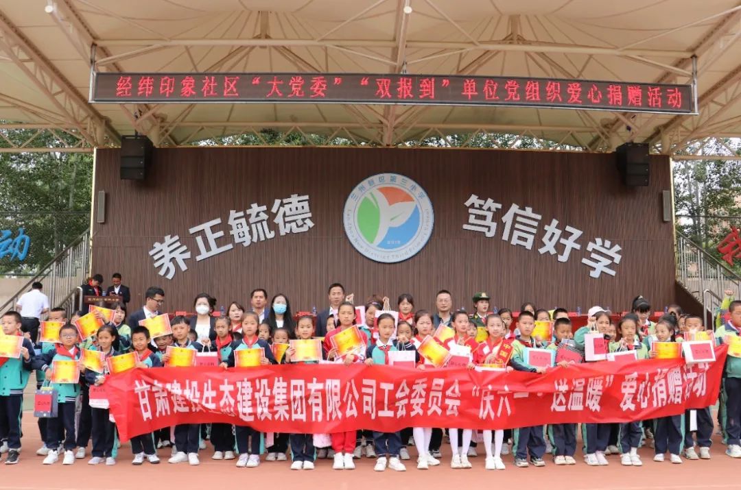 6月1日,生態(tài)建設(shè)公司工會(huì)聯(lián)合蘭州新區(qū)經(jīng)緯印象社區(qū)“大黨委”“雙報(bào)到”單位開展“情暖六一、幫扶筑夢(mèng)”愛心幫扶捐贈(zèng)活動(dòng),走進(jìn)蘭州新區(qū)第三小學(xué),向?qū)W校的困境兒童捐贈(zèng)了100余份書包及各種學(xué)習(xí)用具,并為他們帶去節(jié)日的祝福。