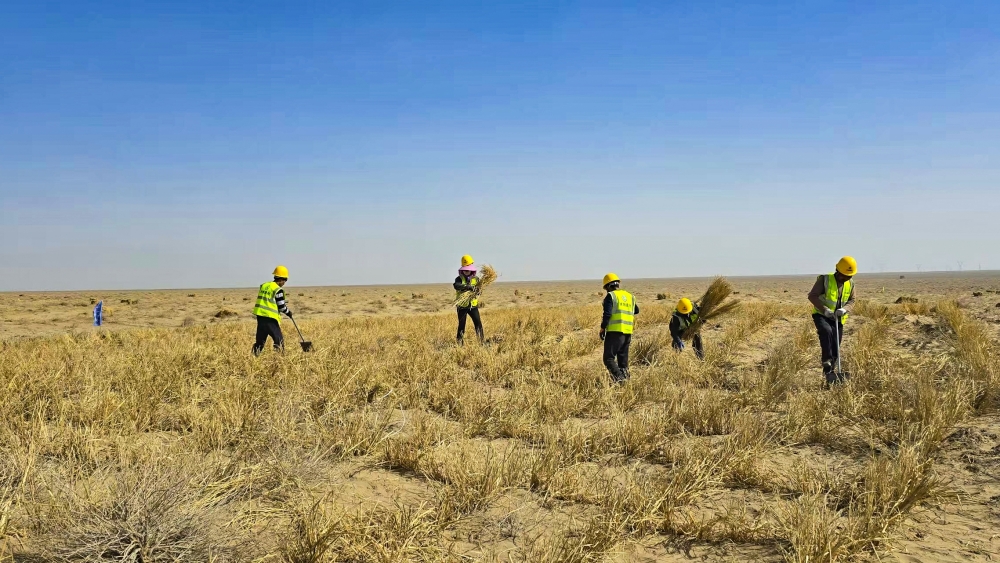 自今年3月,項目開工以來,施工人員克服戈壁風沙大、天氣變化無常等種種不利因素,堅持“高標準、強執(zhí)行、抓細節(jié)、創(chuàng)精品”原則,嚴格按照施工方案組織施工,精準把控草方格間距、大小、挖溝的深度、稻草攤鋪的厚度等各項技術要點,通過責任分區(qū)、定人定崗,實現(xiàn)現(xiàn)場精細管控、精心施工,保障施工有序推進。同時,項目部建立“日碰頭、周調(diào)度、月總結(jié)”機制,及時梳理問題、分解任務,確保進度按計劃推進。嚴格落實安全生產(chǎn)責任制,堅持每日班前開展安全教育,常態(tài)化開展隱患排查整治,將風險消除在萌芽階段,筑牢安全防線。